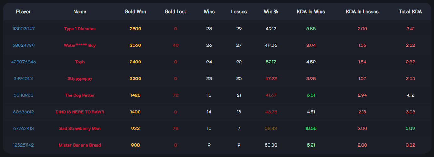 Lowest Win Rate Rocco